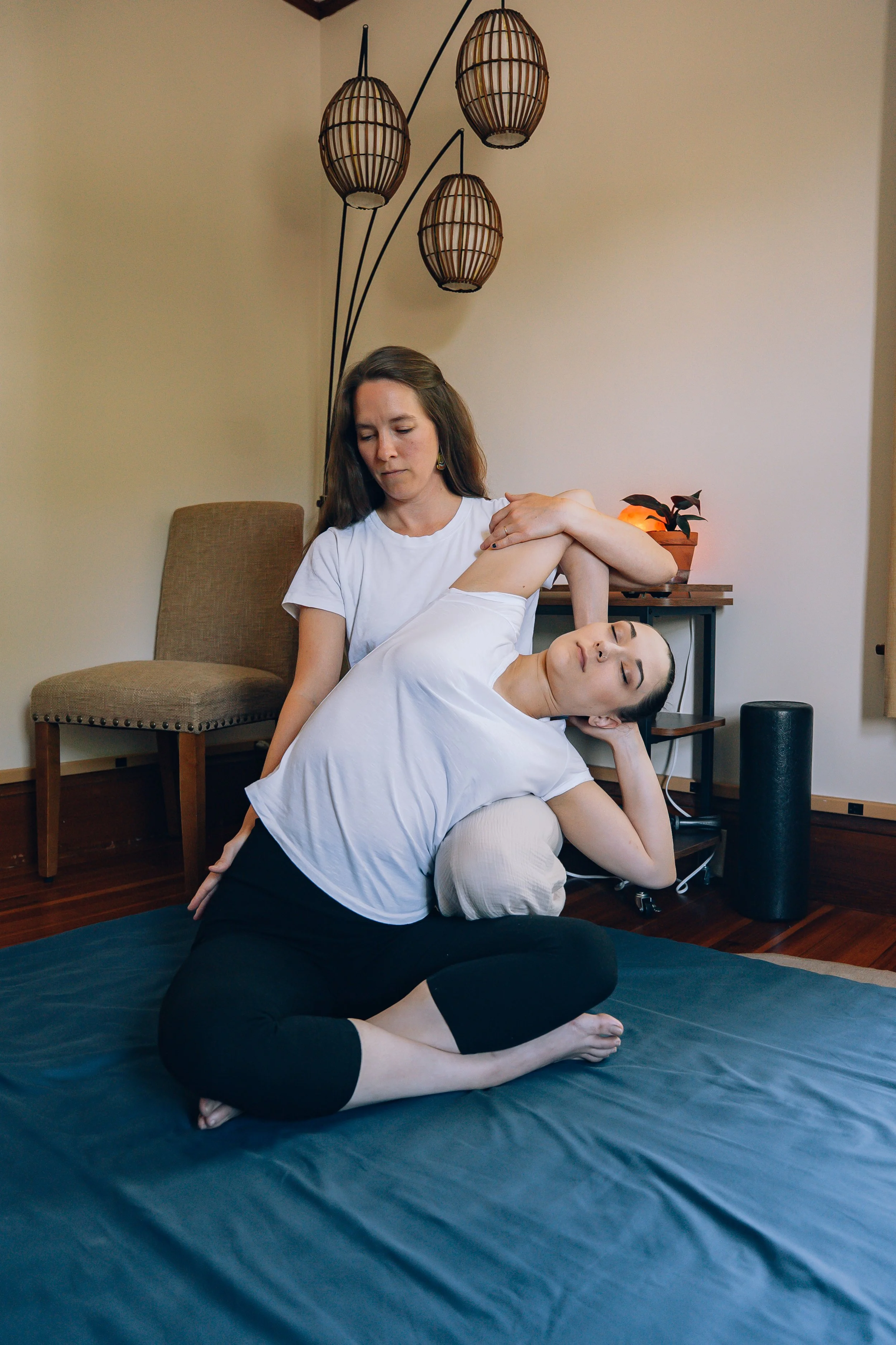 Depending on your needs, treatments might include myofascial techniques, deep compressions, gentle massage, soft holds, rocking, Eastern therapies such as cupping and scraping, and/or focused trigger point therapy.